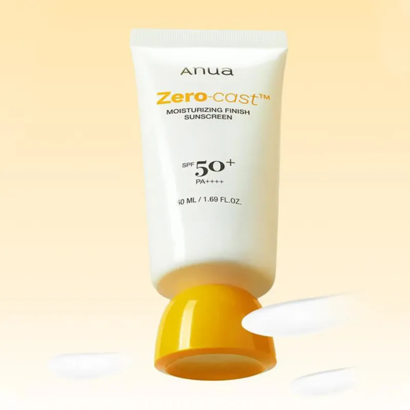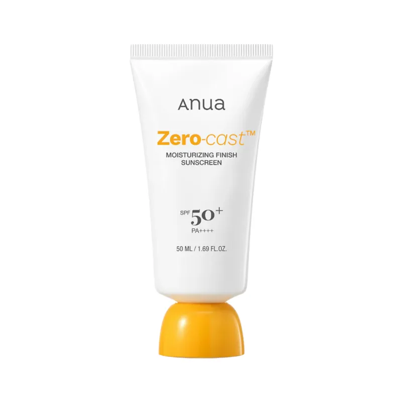 Anua Zero-Cast Moisturizing Finish Sunscreen - lengvos, šilkinės tekstūros SPF kremas su pažangiais plataus spektro UV filtrais užtikrina patikimą apsaugą nuo UVA ir UVB spindulių bei kasdienę odos priežiūrą vienu metu. Moderni „Zero-cast“ technologija leidžia kremui visiškai susilieti su oda – be baltumo efekto, net ir ant tamsesnio odos tono. Formulė praturtinta aktyviais ingredientais, kurie drėkina, ramina ir stiprina odos barjerą. Tai daugiau nei apsauga – tai kasdienis komfortas ir sveikesnės odos pojūtis.