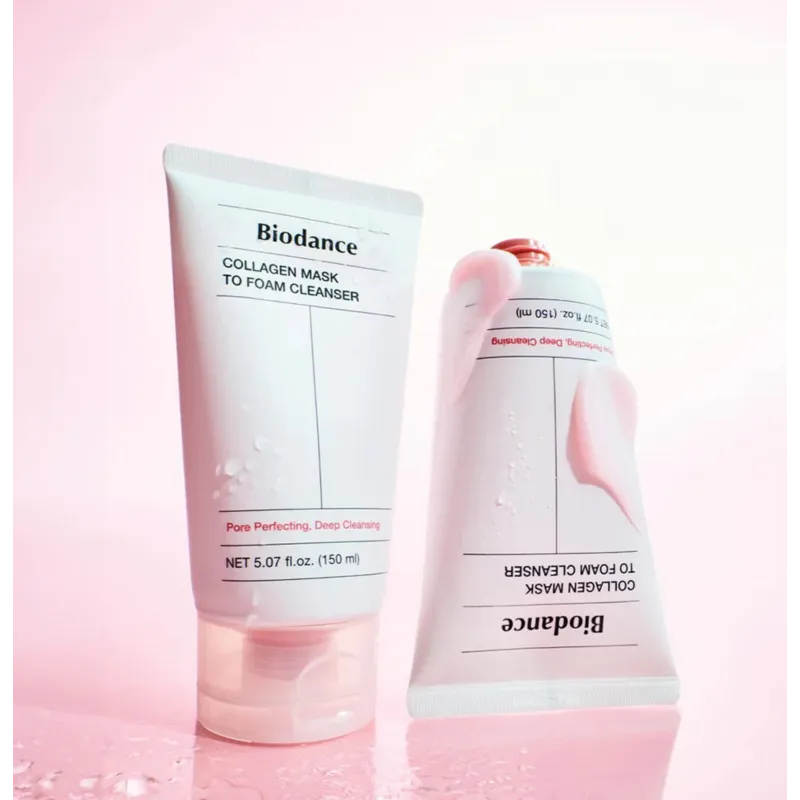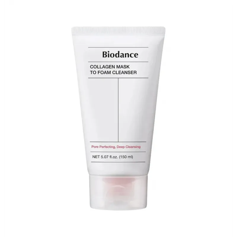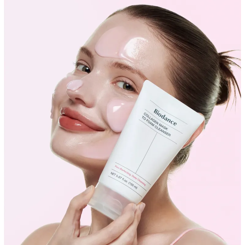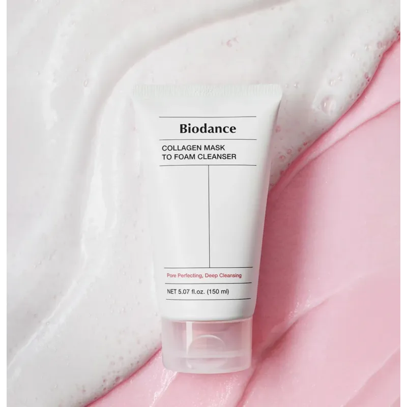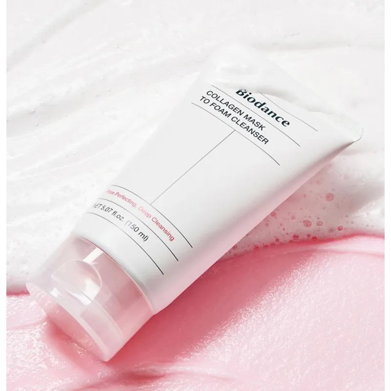 Biodance Collagen Mask to Foam Cleanser – tai inovatyvus 2-in-1 prausiklis, kuris iš pradžių veikia kaip drėkinamoji „kaukes“ tekstūros emulsija, o sudrėkintas virsta švelniomis putomis. Skirtingai nei įprasti prausikliai, ši formulė ne tik valo, bet ir padeda palaikyti odos elastingumo bei komforto pojūtį. Švelnūs paviršinio aktyvumo komponentai efektyviai pašalina nešvarumus, nepažeisdami odos barjero. Po prausimo oda jaučiasi švari, sudrėkinta ir neapsunkinta. Tinka visiems odos tipams, įskaitant sausą ar elastingumą praradusią odą.