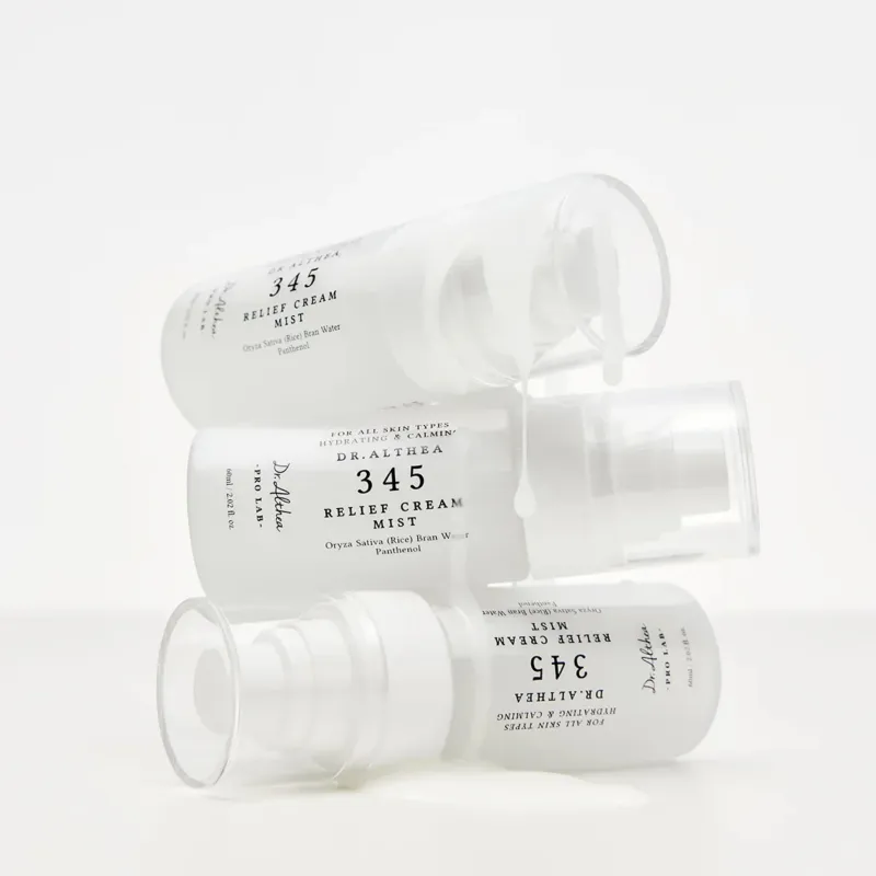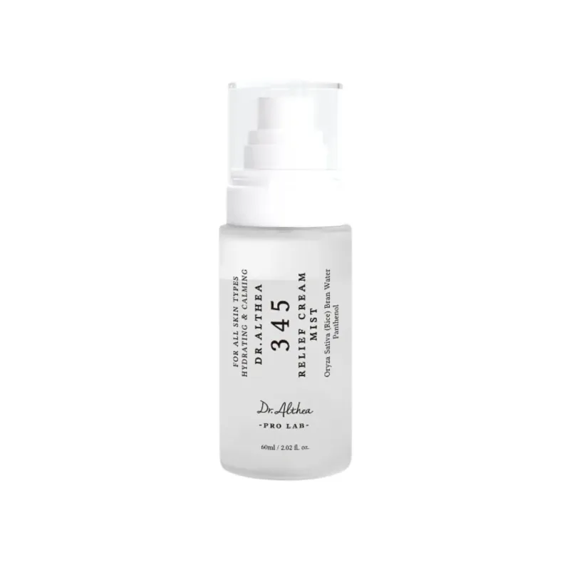 Dr. Althea 345 Relief Cream Mist – tai drėkinamoji veido dulksna, skirta odos komforto ir drėgmės balanso palaikymui. Unikali dvisluoksnė formulė sujungia drėkinančią vandens esenciją ir kremiškesnį sluoksnį, kad suteiktų tiek gaivaus drėkinimo, tiek komforto pojūtį vienu purškimu. Lengva, švelniai pieninė dulksna tolygiai padengia odą, neapsunkina ir nepalieka lipnumo. Formulė skirta odai, kuri jaučia tempimą, jautrumą ar yra paveikta išorinių veiksnių. Purškiklis padeda palaikyti odos drėgmės balansą, sustiprina komforto pojūtį ir suteikia odai švelnumo. Puikiai tinka naudoti tiek kasdienėje rutinoje, tiek dienos eigoje, kai odai reikia papildomo nuraminimo. Tinka visiems odos tipams, ypač jautriai, sudirgusiai ar dehidratuotai odai.