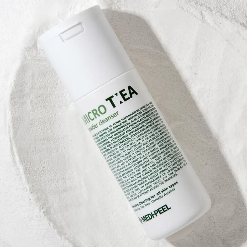 Medipeel+ Micro Tea Powder Cleanser fermentinis miltelių pavidalo (enziminis) prausiklis, sukurtas švelniai, bet efektyviai valyti odą ir pašalinti negyvas odos ląsteles. Suaktyvintas vandeniu, jis virsta švelniomis putomis, kurios valo nepažeisdamos odos barjero. Rūgščių, fermentų ir arbatmedžio derinys padeda palaikyti švarią, lygią ir subalansuotą odą. Oda po prausimo jaučiasi gaivi, švelni ir vizualiai skaistesnė.