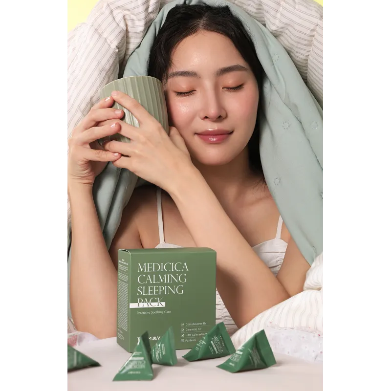 TRIMAY Medicica Calming Sleeping Pack - naktinė kaukė padeda palaikyti odos drėgmės balansą ir komforto pojūtį. Lengva, greitai įsigerianti tekstūra neapsunkina odos ir suteikia gaivumo efektą. Centellasome-M kompleksas sudėtyje turintys ingredientai prisideda prie odos komforto ir suteikia raminamąjį pojūtį. Keramidai padeda išlaikyti drėgmę, prisideda prie odos minkštumo. Pantenolis suteikia švelnumo ir glotnumo efektą. Priemonė sukurta visų tipų odai, tačiau ypač tinka linkusiai į sausumą ir jautrumą. Reguliariai naudojant, oda atrodo sudrėkinta, švelnesnė ir gaivesnė.