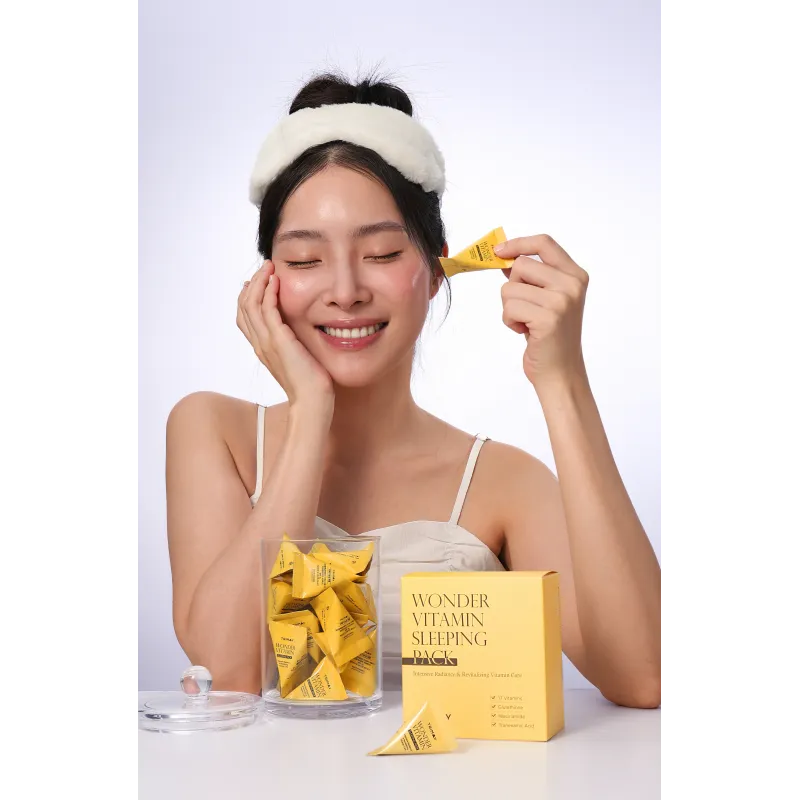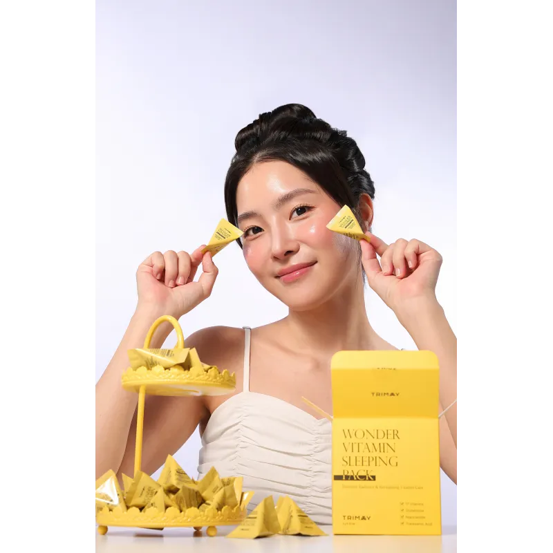TRIMAY Wonder Vitamin Sleeping Pack - švelnios tekstūros naktinė kaukė skirta odos drėkinimui ir gaivinamajai priežiūrai miego metu. Priemonė padeda palaikyti odos komfortą, vizualiai tolygesnį atspalvį ir švelnesnę tekstūrą. Sudėtyje esantis vitaminų kompleksas suteikia odai gyvybingumo, padeda sumažinti nuovargio požymius ir palaikyti sveiką išvaizdą. Traneksamo rūgštis prisideda prie odos tolygumo pojūčio, o glutationas padeda išlaikyti odos skaistumo efektą. Skvalanas palaiko odos drėgmės balansą, padeda išvengti sausumo ir suteikia odai švelnumo pojūtį. Lengvos tekstūros formulė greitai įsigeria, neapsunkina odos ir suteikia gaivos efektą. Kaukė pateikiama patogiuose piramidiniuose paketėliuose, kurie užtikrina higienišką naudojimą.