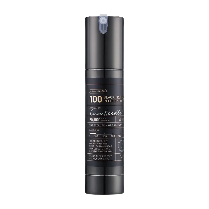 VT Cosmetics Black Truffle Reedle Shot 100 – tai intensyvaus poveikio ampulė, sukurta odos gyvybingumo, elastingumo ir drėgmės balanso palaikymui. Formulė praturtinta juodųjų trumų ekstraktu, niacinamidu ir drėkinančių ingredientų kompleksu, kurie padeda palaikyti skaistesnės, lygesnės ir labiau sudrėkintos odos išvaizdą. Produktas priklauso Reedle Shot linijai – tai inovatyvios formulės ampulės, sukurtos taip, kad padėtų veikliosioms medžiagoms efektyviau pasiskirstyti ant odos paviršiaus. Po naudojimo oda jaučiasi švelnesnė, gaivesnė ir labiau prižiūrėta.