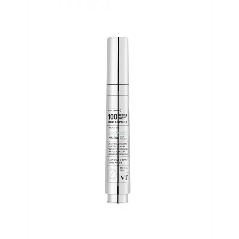 VT Cosmetics Reedle Shot Hair Ampoule 100dL – tai intensyvi galvos odos ampulė su pažangia Reedle Shot™ mikrospikulų technologija, sukurta stipresniems, tankesniems ir gyvybingesniems plaukams palaikyti. Formulė orientuota į galvos odos būklės gerinimą, šaknų stiprinimą ir plaukų apimties pojūčio didinimą. Mikro dydžio silicio spikulės švelniai stimuliuoja galvos odos paviršių ir padeda aktyviosioms medžiagoms efektyviau pasiekti odą. Naudojimo metu gali būti jaučiamas lengvas dilgčiojimas – tai aktyvios formulės veikimo ženklas. Tai ne įprasta plaukų priemonė, o koncentruota galvos odos ampulė, sujungianti mikrospikulų technologiją, PDRN, peptidus ir kofeiną – kompleksiniam, kryptingam poveikiui.