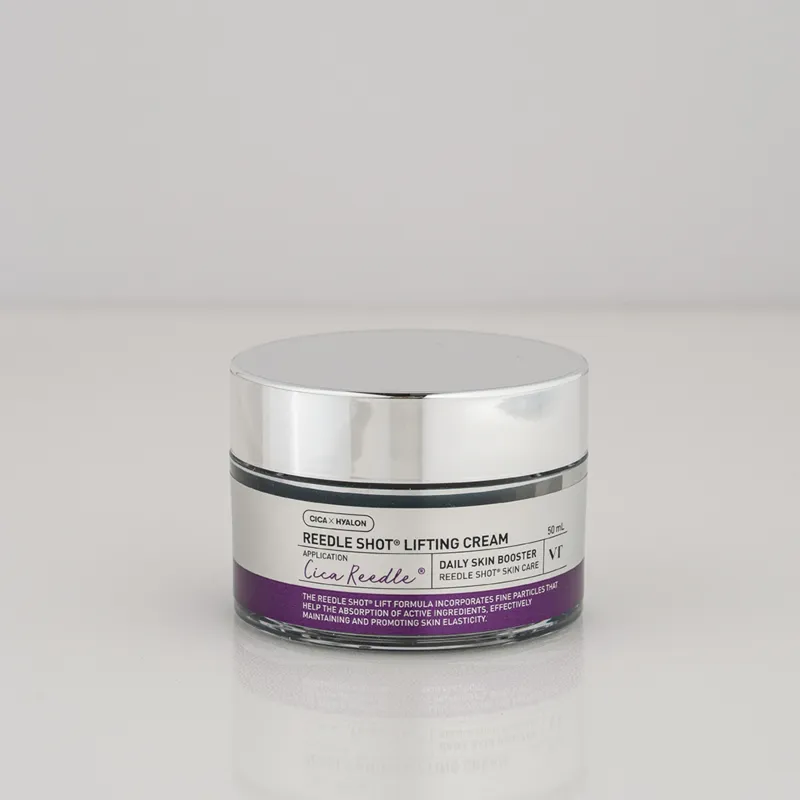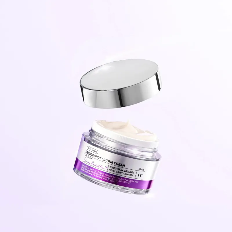 VT Cosmetics Reedle Shot Lifting Cream - prabangus stangrinamasis kremas, sukurtas atkurti odos elastingumą ir suteikti jai išraiškingesnį, tvirtesnį kontūrą. Inovatyvi „Cica Reedle™ technologija su itin smulkiomis dalelėmis (mikroadatėlėmis) padeda veikliesiems ingredientams efektyviau įsiskverbti į odą, sustiprinant jų poveikį. Šilkinė, maitinanti tekstūra apgaubia odą komfortu, o pažangus peptidų ir lipidų kompleksas padeda atkurti jos struktūrą. Oda tampa lygesnė, stangresnė ir akivaizdžiai gyvybingesnė.