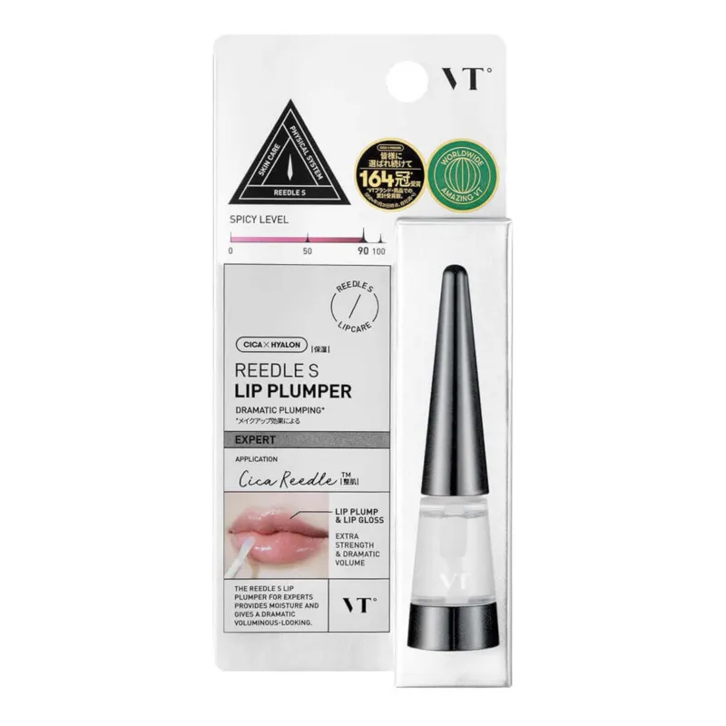 VT Cosmetics Reedle Shot Lip Plumper Expert – tai intensyvaus poveikio lūpų putlintojas, sukurtas suteikti ryškesnio tūrio, glotnumo ir komforto pojūtį. Formulė su šildančiais ir vėsinančiais komponentais sukuria aktyvų efektą, kuris padeda vizualiai paryškinti lūpų kontūrą ir suteikti joms putlesnę išvaizdą. Kartu su raminančiais ir drėkinančiais ingredientais priemonė ne tik suteikia apimties efektą, bet ir padeda išlaikyti lūpų minkštumą. Blizgi tekstūra tolygiai pasiskirsto ir suteikia lūpoms švytintį, pilnesnį efektą. Tinka naudoti vieną arba kaip pagrindą po lūpų dažais.